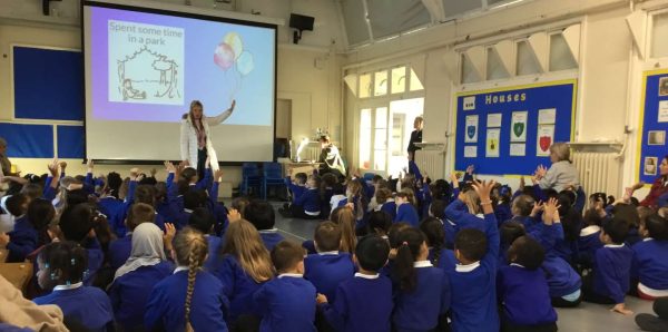 The team came into school today for their first visit and met the children and staff. They led an assembly for the children about wellbeing and the different activities we do that make us feel happy.