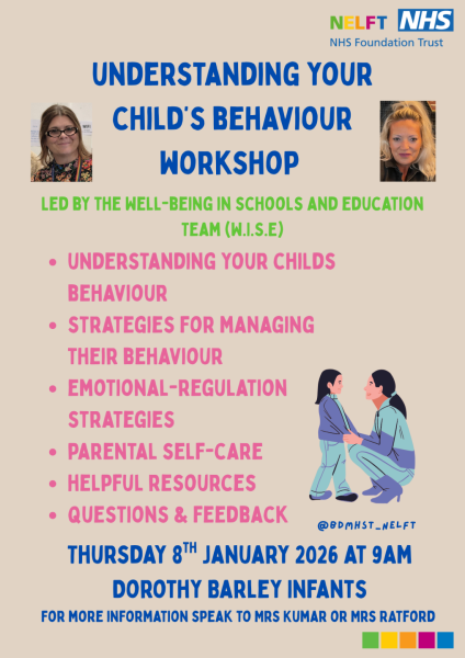 Following on from the parent survey, the team will be offering their first session on understanding your child’s behaviour on Thursday 8th January at 9am. As well as offering expert advice, the team will be available to answer any questions that you may have about your child’s behaviour and support in any way that they can.