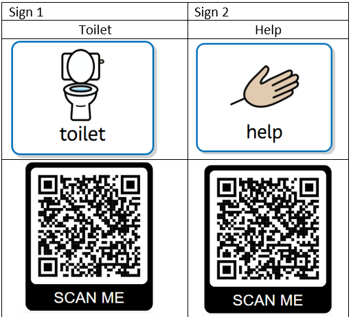 Here are the signs we have been learning this week. Scan the QR codes for further information!