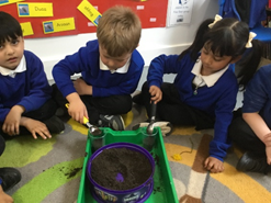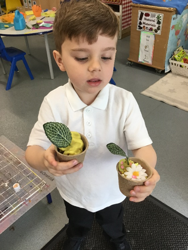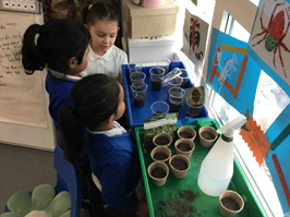 This week in Nursery we have been learning how plants grow. We looked closely at different seeds and spoke about what seeds need to grow. We all planted a sunflower see and made sure that we watered them each day.