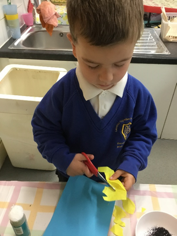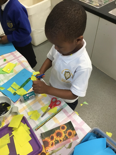 We also made a collage of our own sunflower and very carefully drew sunflowers too!