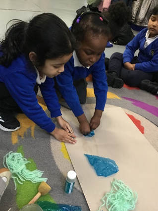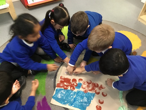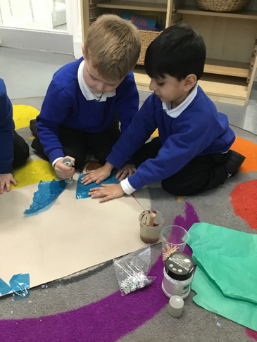 Also, in PSHE this week, we have been working as a team to complete different tasks. We know how important it is to be a team and help one another. We worked as a team to create a collage to tell the story of ‘We’re Going on a Bear Hunt.’ The children listened to each other’s ideas and helped one another to create their scene.