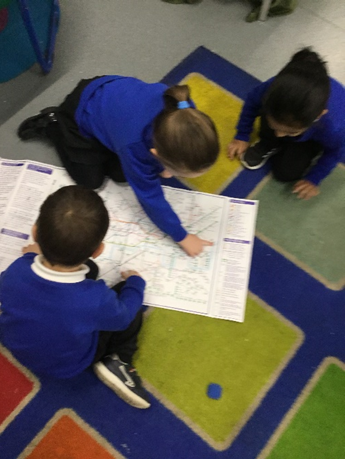 The in Geography, we have been talking about going on a journey. We looked at the different maps and even went on a journey together through the school to visit the office. The children could say which direction we needed to go in and they also drew their own maps.