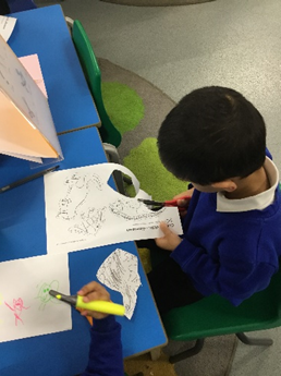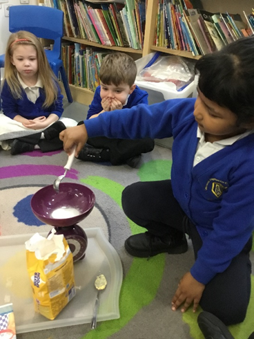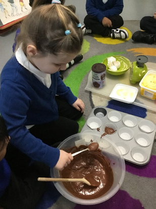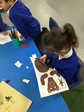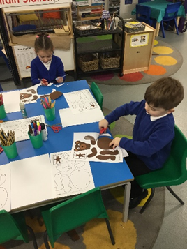 We have also been practising our fine motor skills by cutting a range of different media. Then in Science, we have worked together as a team to make our bear cakes. We read the recipe and could name all of the ingredients and combined them together. We noticed how our mixture changed especially after we had taken it out of the oven. We then carefully decorated our cake to make it look like a bear.