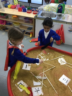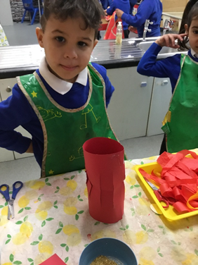 This week we have been learning about Chinese New Year. We have made Chinese lanterns, money purses and dragons. We have also written Chinese numbers in glitter with chopsticks and feathers.