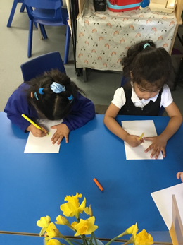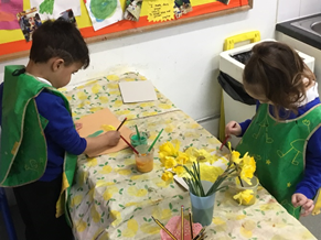 This week in Nursery, we have been learning all about Spring. We have looked in the garden for signs of and found a beautiful blossom tree. We carefully drew and painted daffodils.