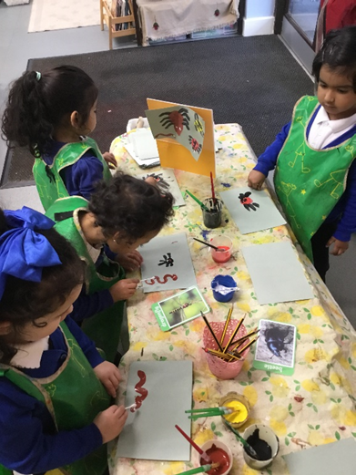 We have painted some wonderful pictures of mini-beasts, we have made mini-beasts with the playdough and we also had a lot of fun searching for mini-beasts in the garden. We have also been finding out facts about min-beasts using non-fiction books.