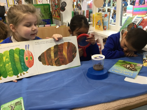 This week in Nursery we have been learning all about mini-beasts. We are so excited to have our own caterpillars and we have been closely looking at them each day to see how they have changed. We cannot wait until they turn into butterflies.