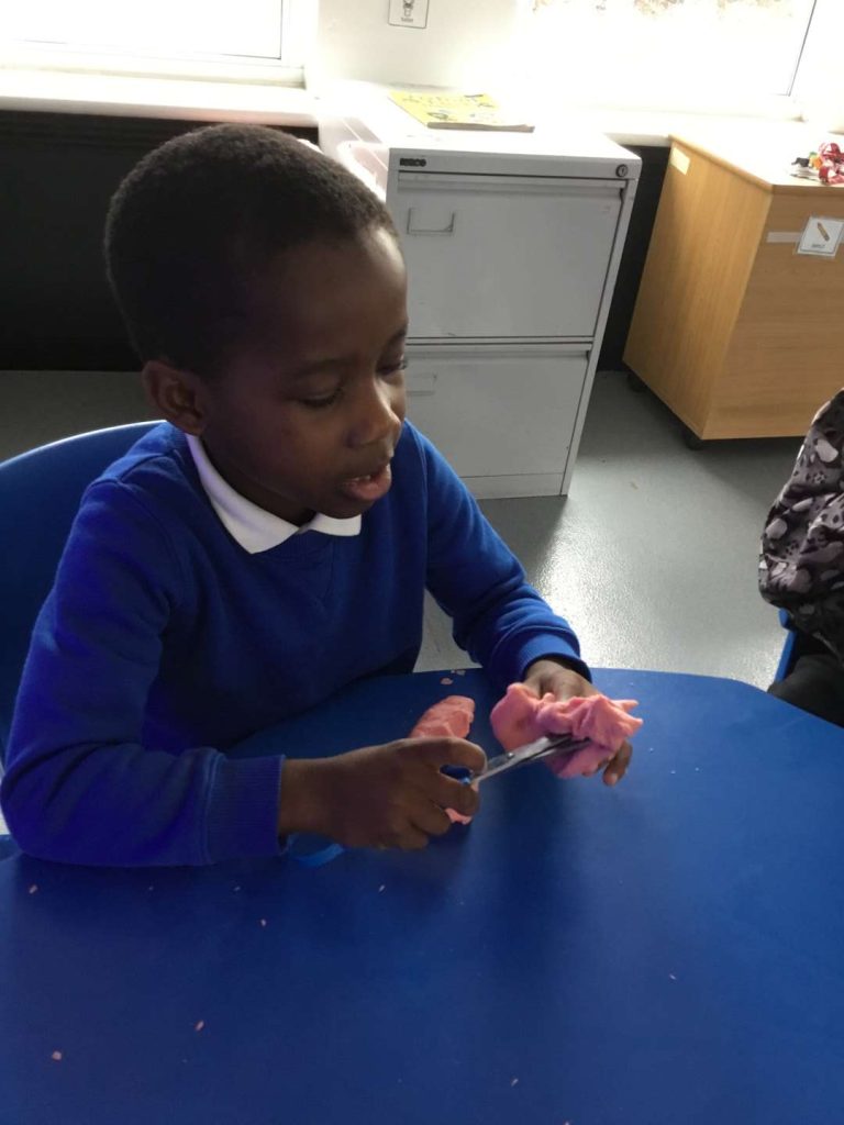 This week in Oak Class we have been working on our fine motor skills. We have been rolling, squeezing and patting the playdough. We then used scissors to snip and cut the playdough into different shapes. We cut some lines and then made a sausage and cut them into smaller pieces.