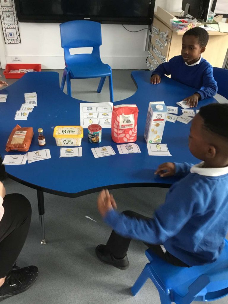 The children were able to match keywords to the ingredients. We then followed the recipe and poured the mixture into the cupcake cases. We then put the cupcakes into the oven for 20 minutes. The children enjoyed eating them and took some home.