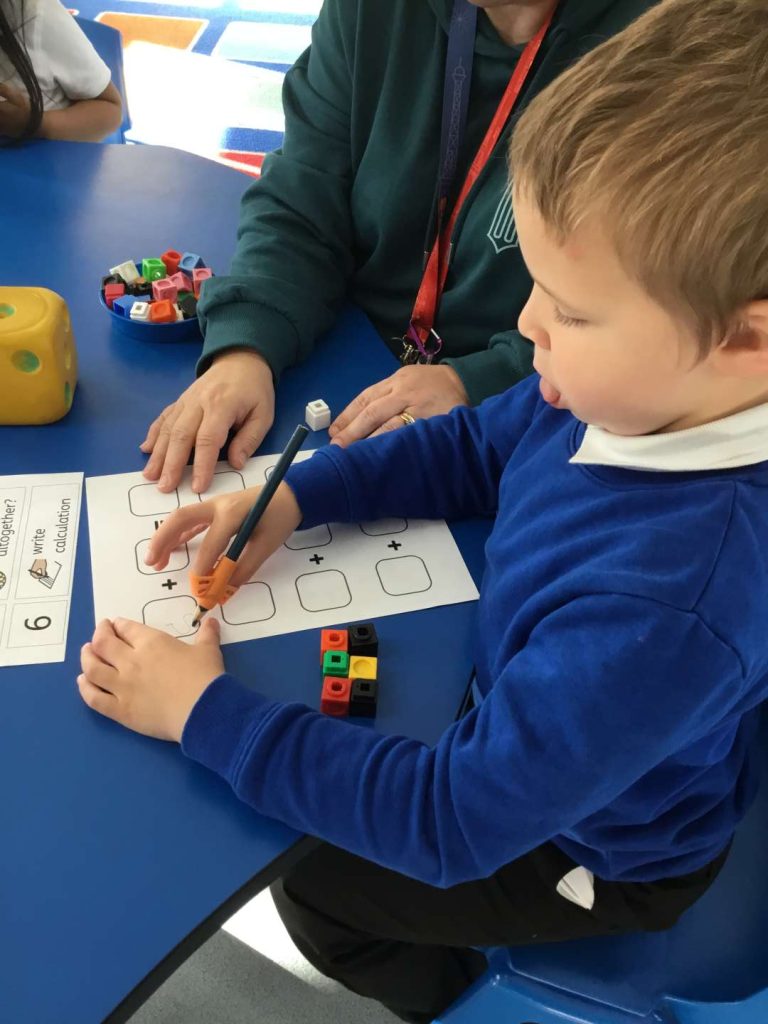 This week in Oak Class, we have been learning to find one less than a number and add two numbers together. We used real concrete resources to support us in seeing the number visually.