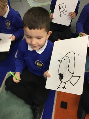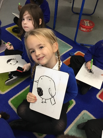 This week in Reception, we have been reading the story ‘Little Robin Red Breast’ and we loved it so much, we learned how to draw robins by following a step by step video!