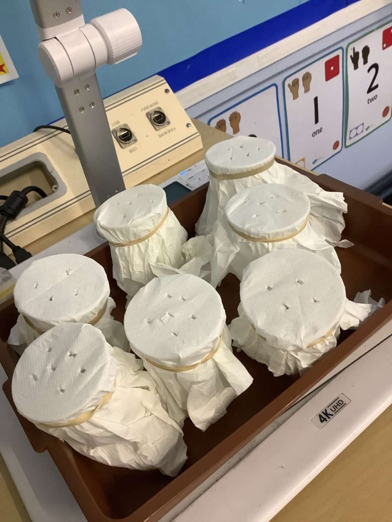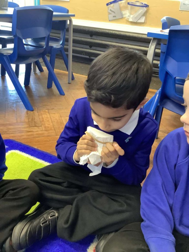 In Art this week, Year 1 have been making printing plates. We cut shapes out of coloured foam and stuck them on to polystyrene to make a printing plate. Next week we are going to print our own African patterns.