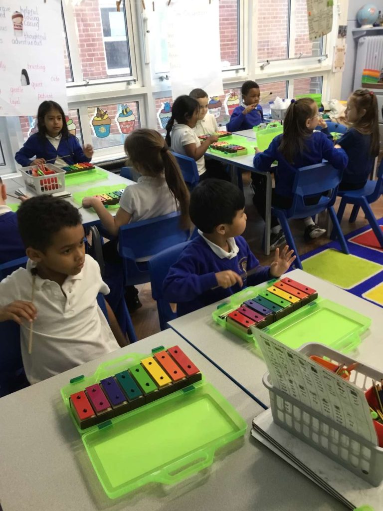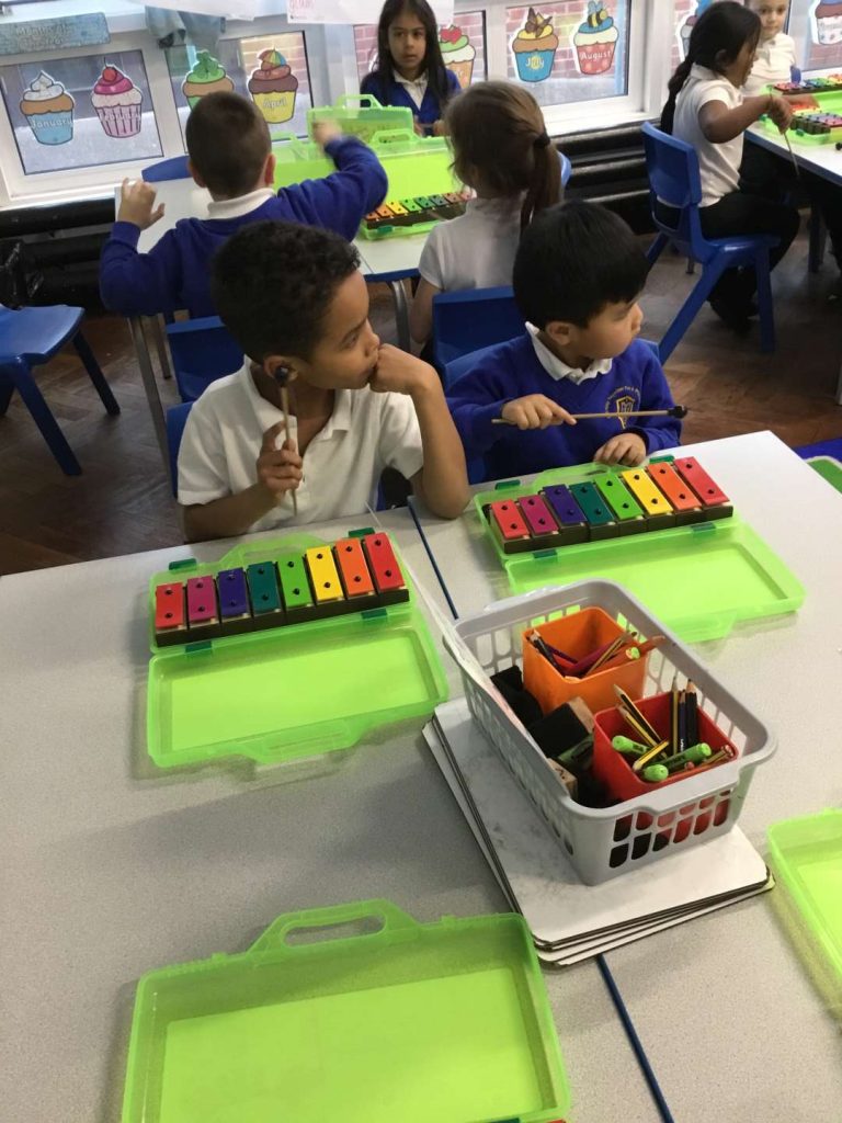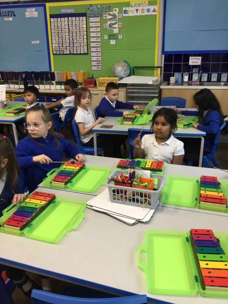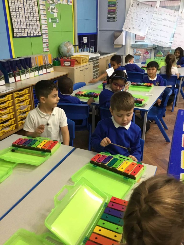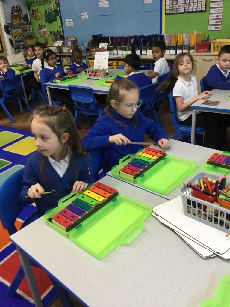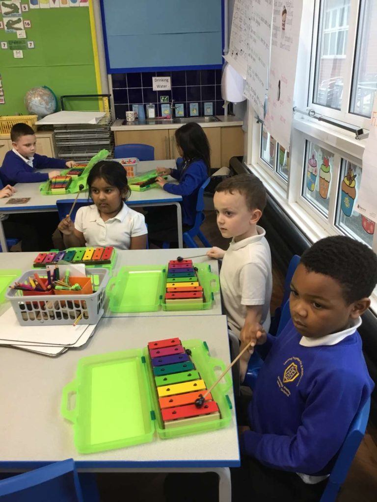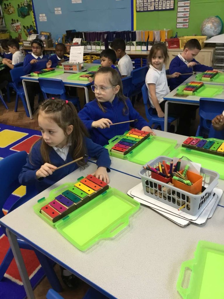 13 Mar Year 1 Music – Playing Instruments Posted at 13:39h in Edition 80, Music, Year 1 by Donna Scammell 0 LikesThis half term in Music we have been learning to listen carefully and to recognise different sounds.We have learnt a song called The Name Song and play the glockenspiels to accompany it.Filter CategoriesFilter - All