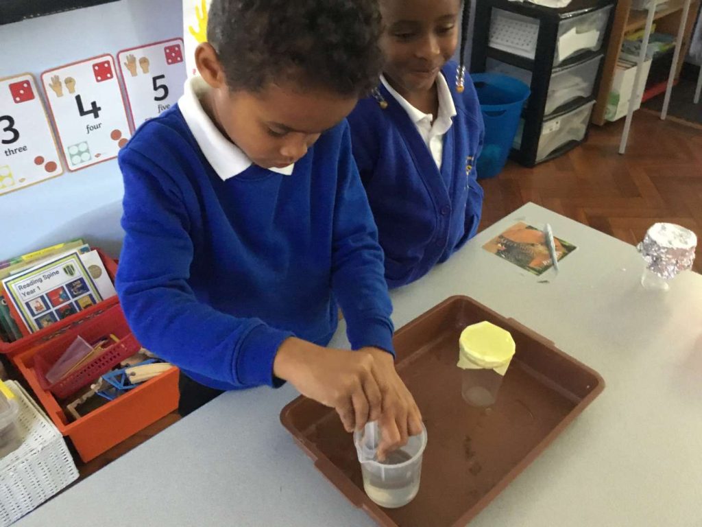 This week in Science, Year 1 have been testing different materials to find out if they are waterproof.