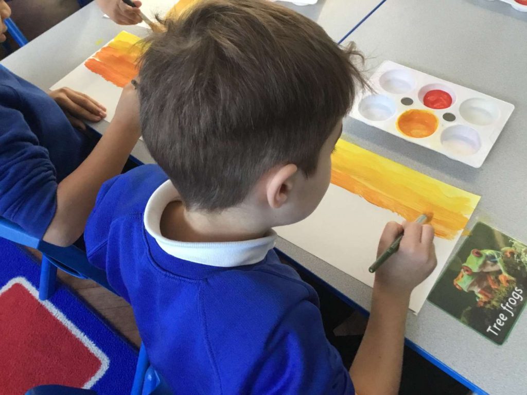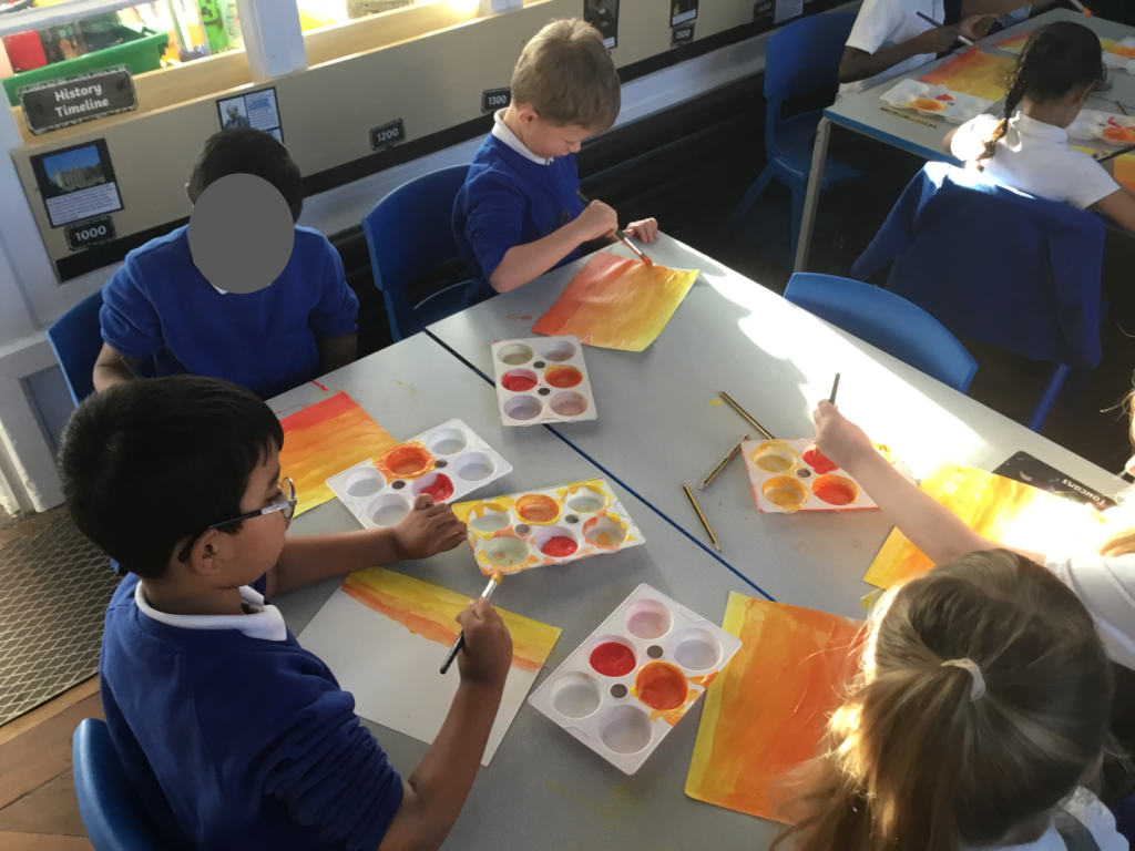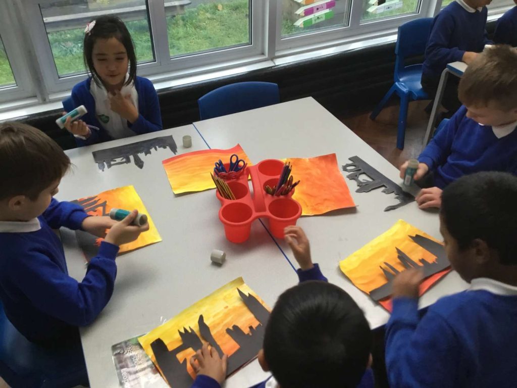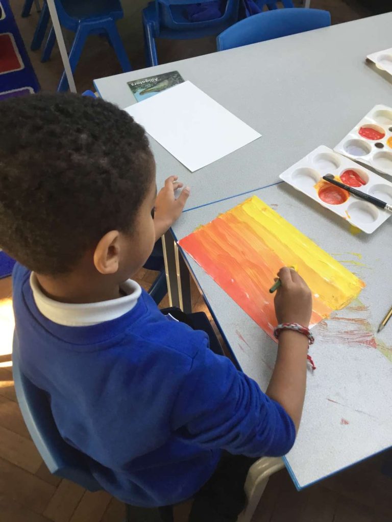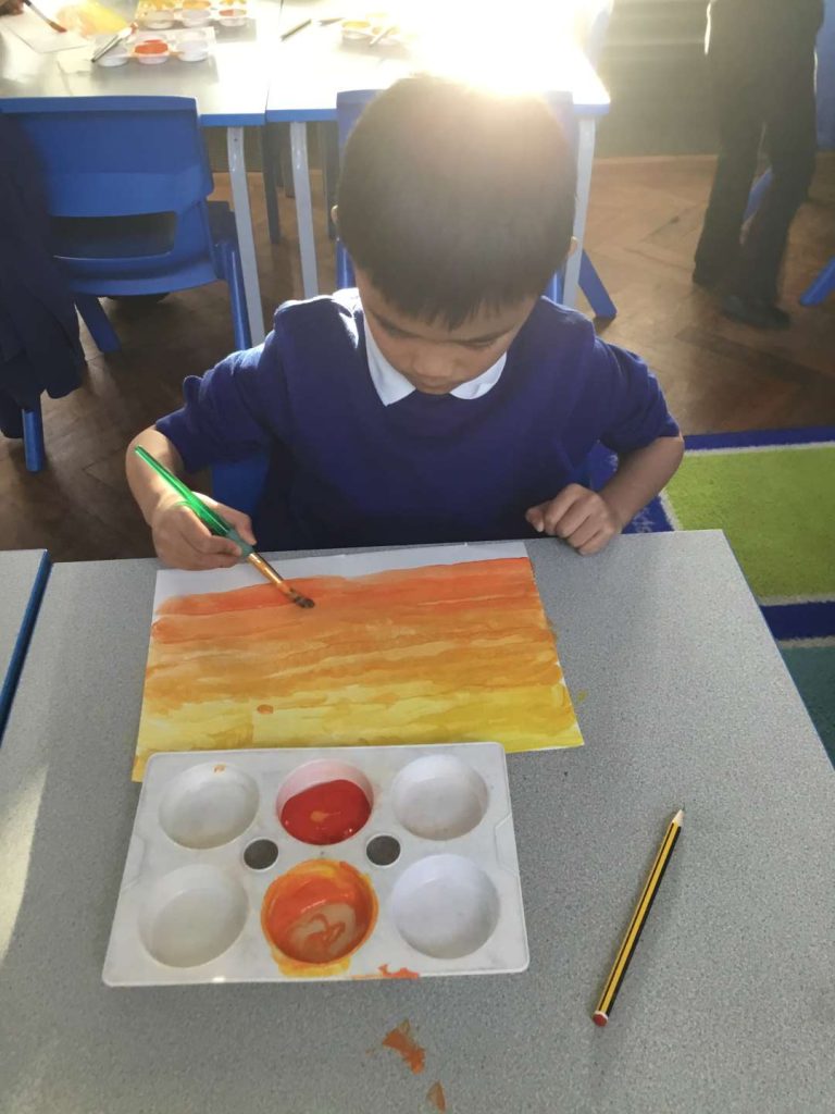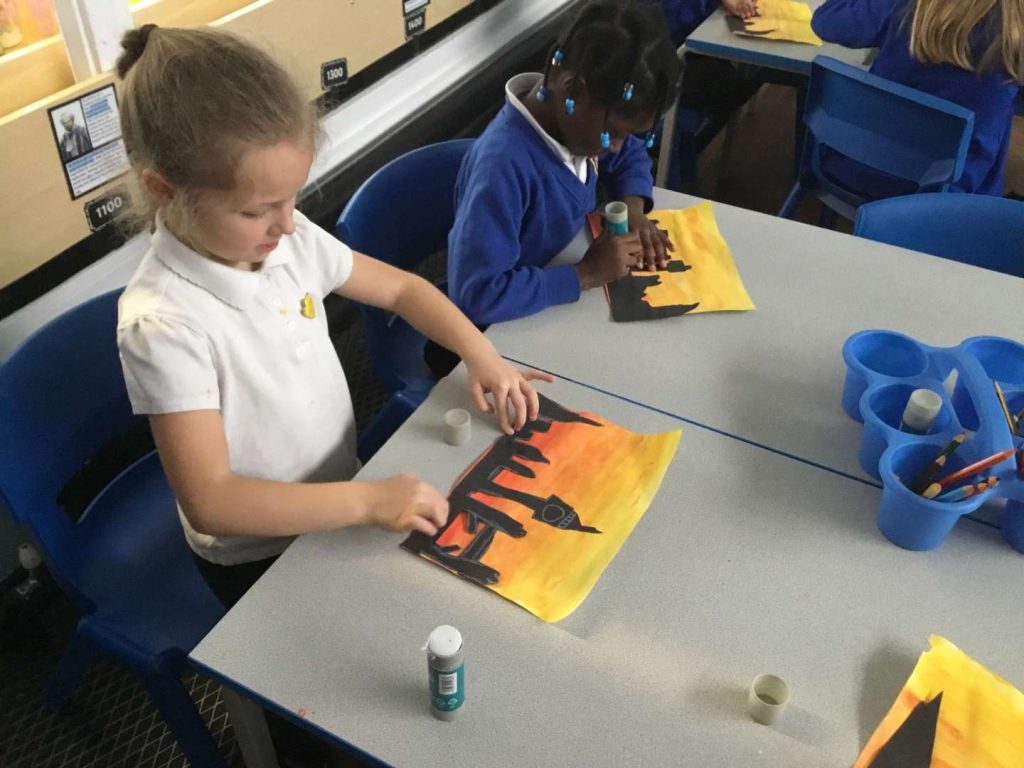 This week in our Art lessons, Year 2 have finished their sunrise over London paintings. We blended red and yellow to create the sunrise effect, then picked our favourite London landmarks to include in the skyline.